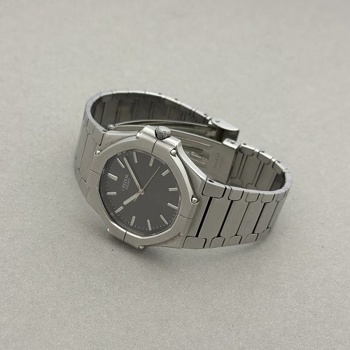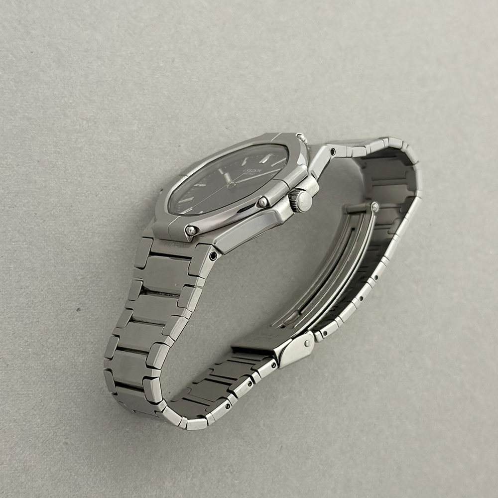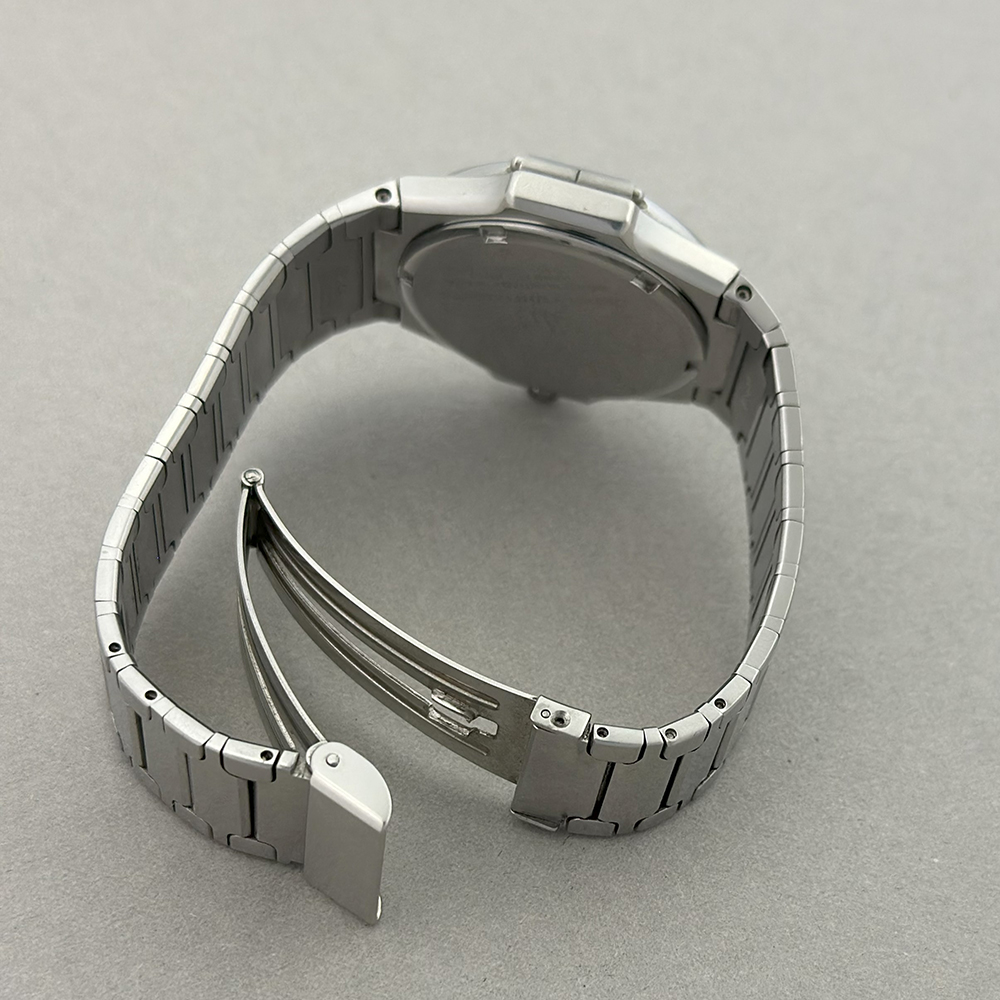 ケースとの一体感を重視した高級感あふれる造形と、スクリューバックとネジ込み式リューズを採用した、ラグジュアリースポーツウオッチです。