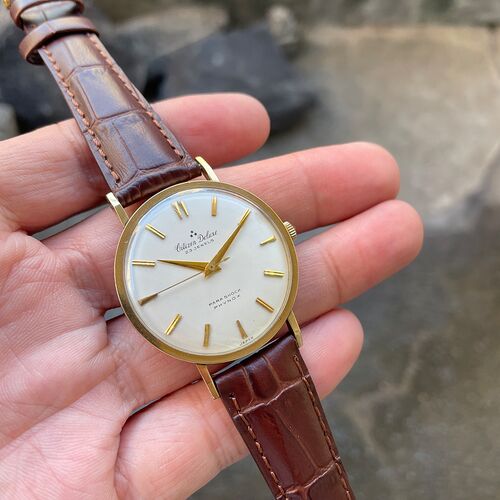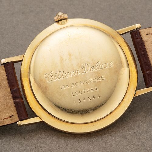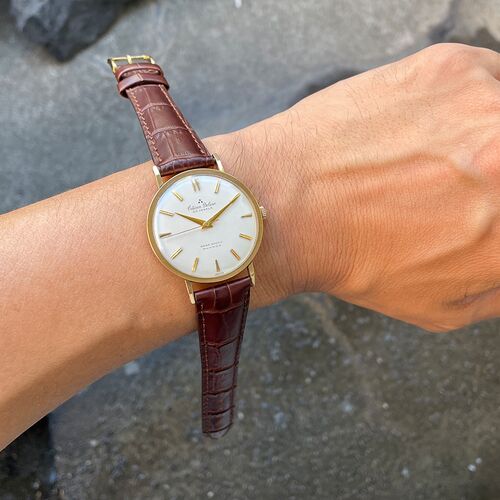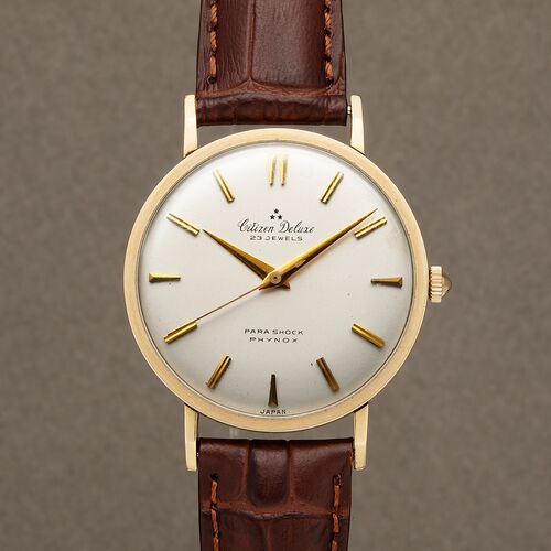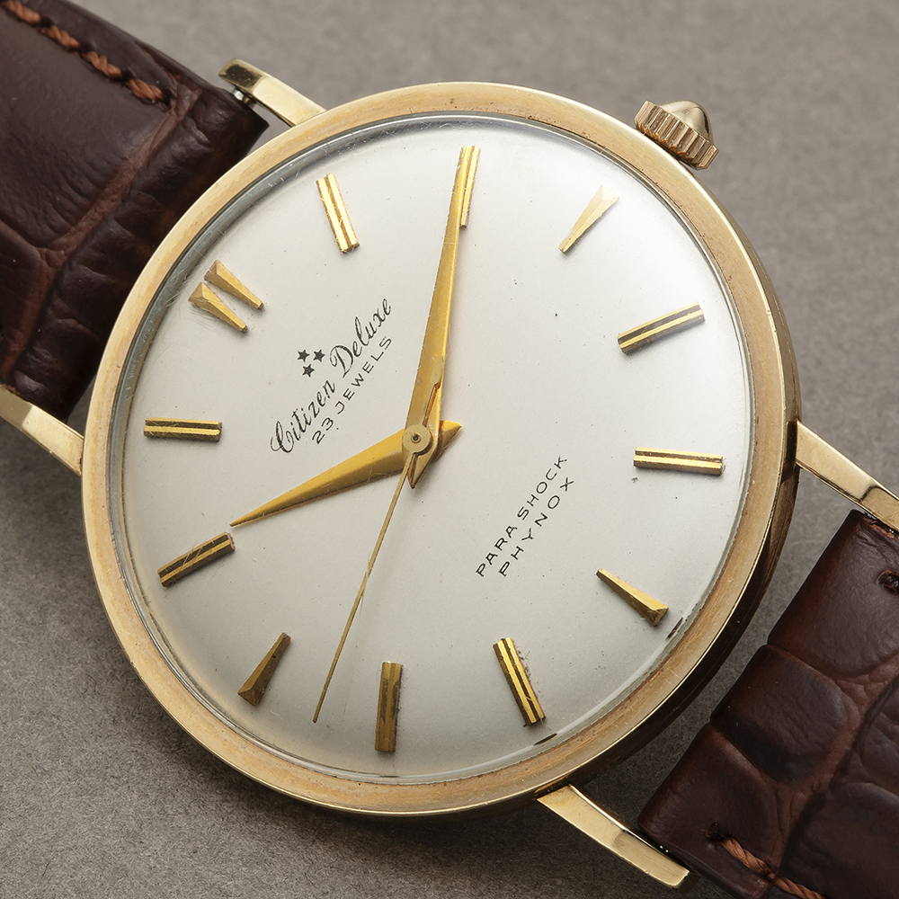 シチズン初の“本格的薄型男性用中3針腕時計”として1958年に登場した“デラックス”。当時は、生産が間に合わないほどの売れ行きだったようです。シチズンの公式サイトによると、デラックス1機種で100万個を達成するなど、同社を代表する製品でした。