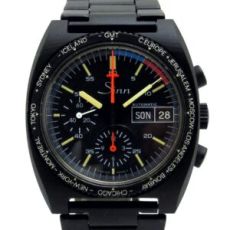 SINN ジン ”1980s レマニア5100 クロノグラフ ワールドタイム ベゼル” オールトリチウム レマニア製自動巻機械式ムーブ Cal-5100 PVDコーティングアルミニウム製 西ドイツ エクスパンドロ社製ブレスレットSS PVD 弊社にてOH済